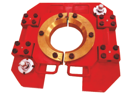 Janki Oil Tools wear guide assembly are robust and reliable tools specifically designed to prevent wear on master bushing and bowls while drilling operations.The wear guide assembly fits directly in the pin drive locations on 27-1/2" & 37-1/2" master bushings. Locking pin drives are optional. The expandable wear guide rings are available for pipe size 3-1/2" to 5" and 5-1/2" to 65/8". The wear guide ring material is designed to prevent any wear to the drill string.